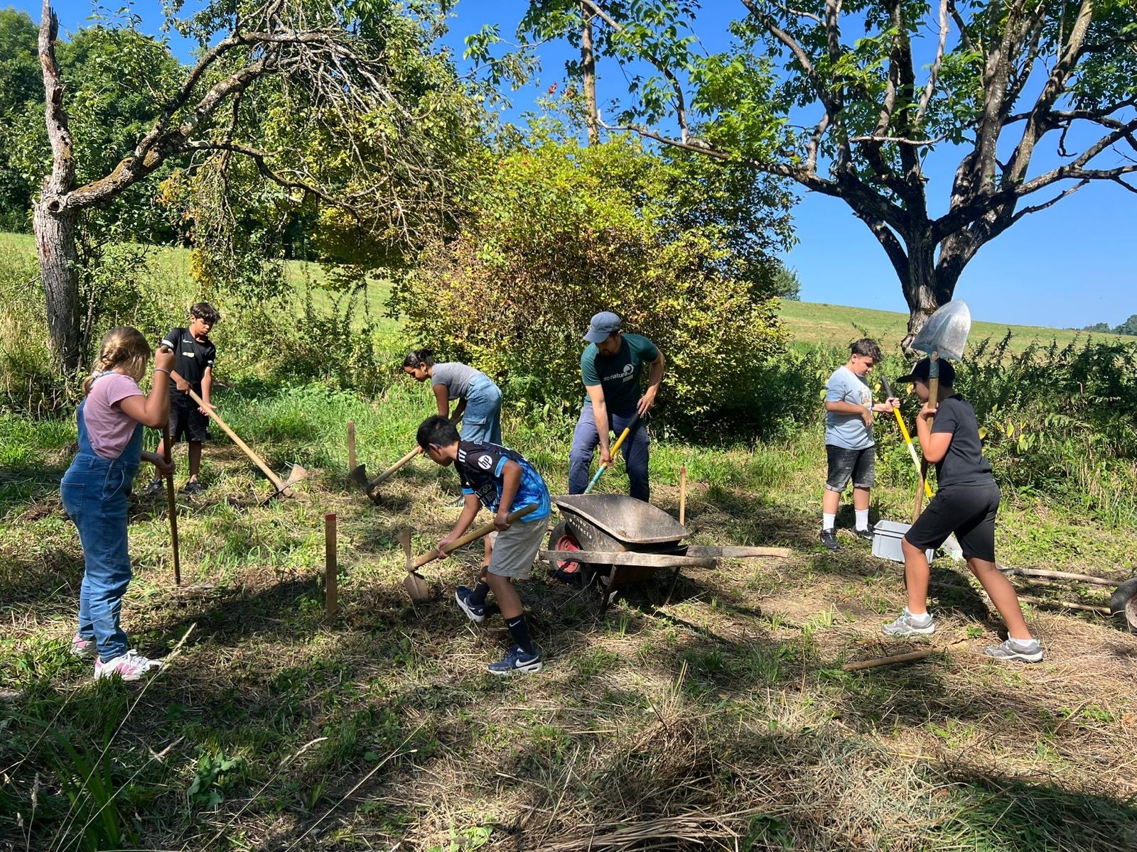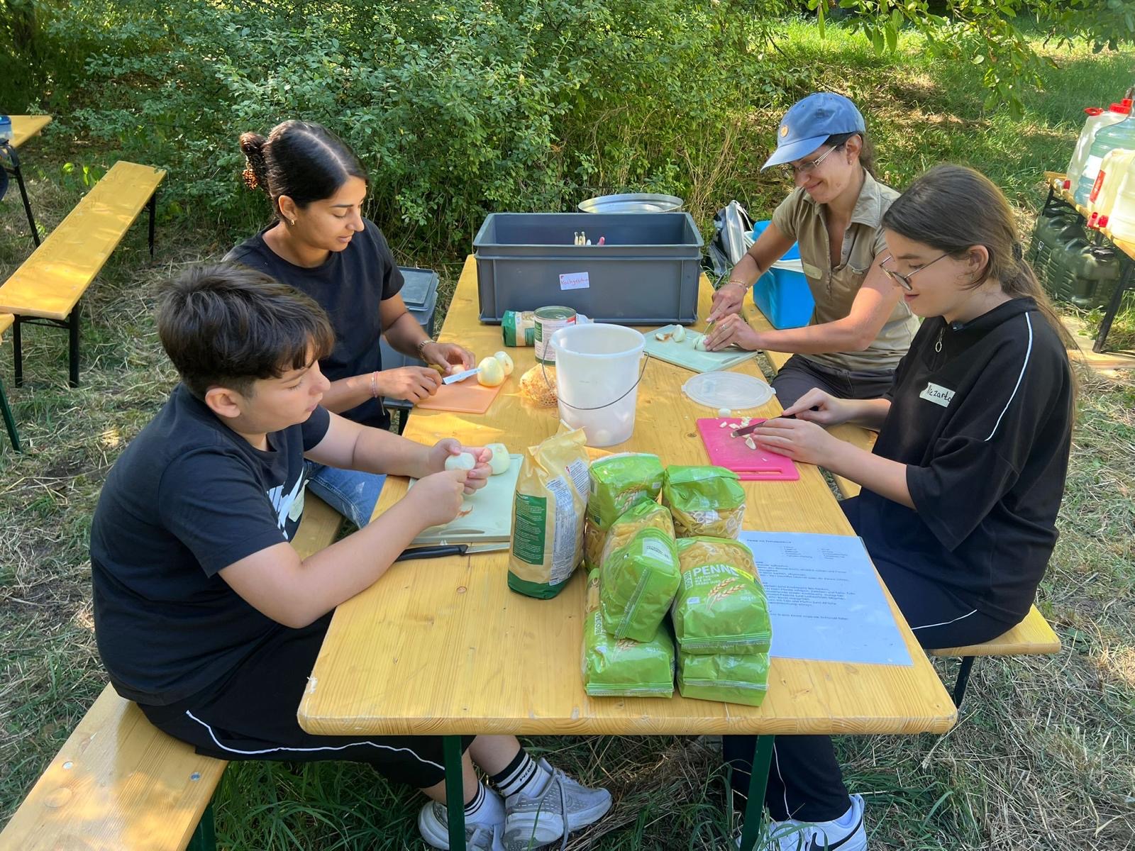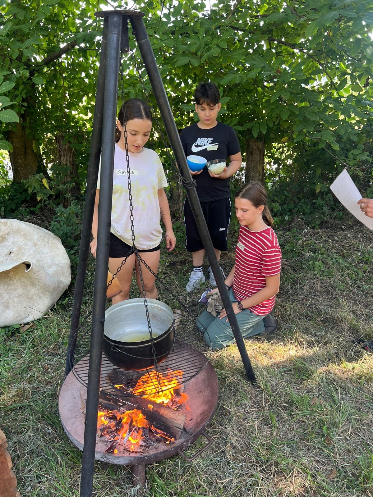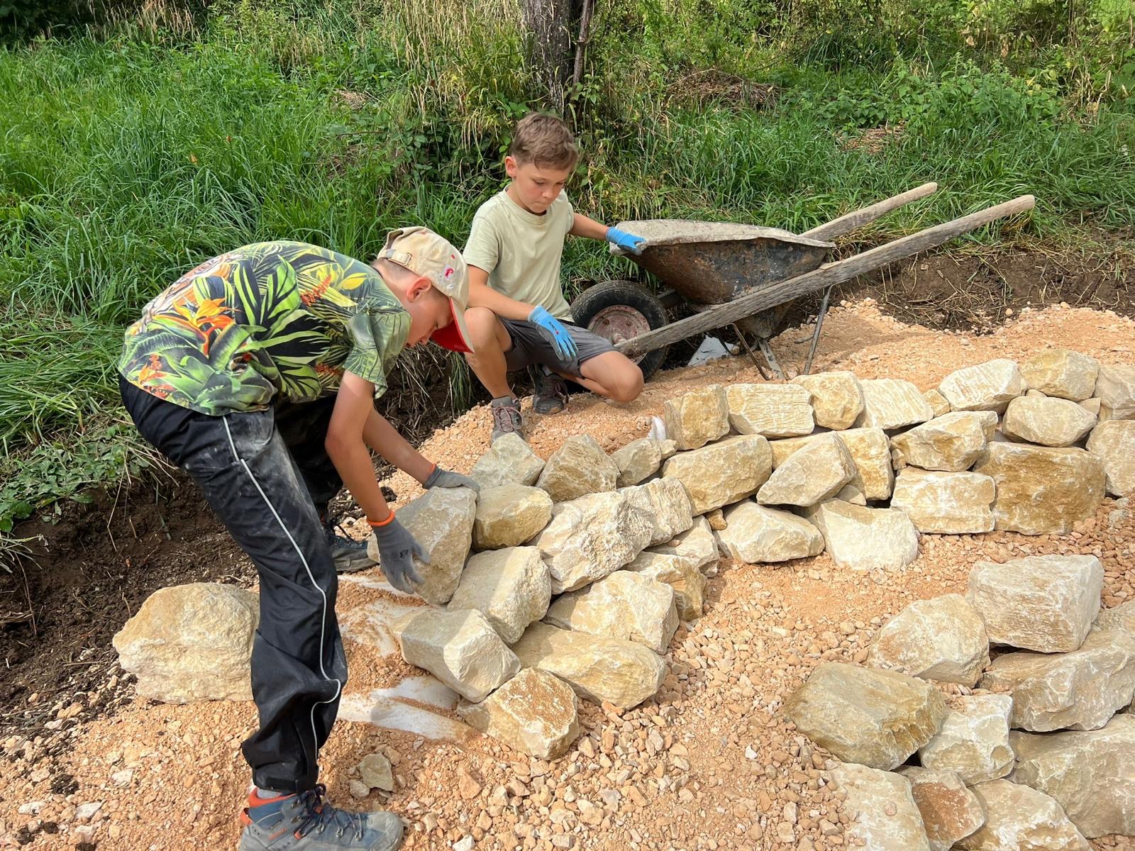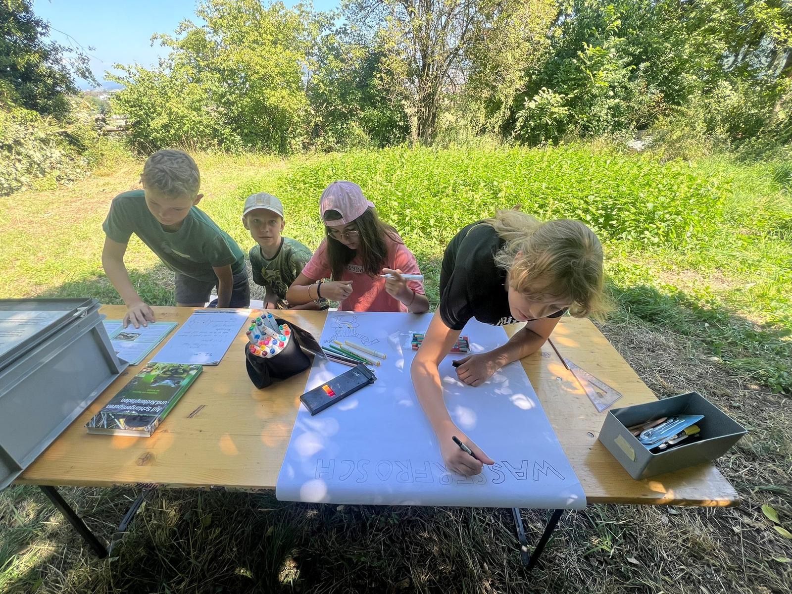Am Montag haben wir uns erstmals vorgestellt, dann haben wir uns in Teams aufgeteilt und alle Teams mussten sich einen Tiernamen, eines Amphibs aussuchen. Es gab vier Teams. Jedes Team hat mal gekocht, mal am Weiher gearbeitet, mal abgewaschen, mal eine Murmelbahn gebaut, ein Plakat gemacht und mal ein Ausflug gemacht. Zwischen all dem haben wir eine Znüni- und eine Mittagspause gemacht. Am Schluss haben wir noch ein Eis von der Bäuerin bekommen. Am Dienstag haben wir am Anfang ein Spiel gespielt. Zwischen den Posten die jedes Team machen muss, haben wir eine Znüni- und Mittagspause gemacht. Zum Mittagessen gab es Nudelsalat, Bulgursalat, Schlangenbrot und wir mussten etwas mitbringen für auf den Grill. Am Mittwoch haben wir am Anfang ein Aufwärmspiel gespielt. Dann sind wir in unsere Gruppen gegangen. Wir haben gekocht, ein Plakat gemacht, am Weiher gebaut oder haben eine Exkursion gemacht. Nachdem haben wir Znüni gegessen. Nach dem Znüni ging es genau gleich weiter bis zum Zmittag. Es gab Reis mit Erbsen und Karotten. Danach haben wir unsere Plakate ausgestellt, ein Quiz gemacht und den Kugelbahn-Wettbewerb ausgewertet. Und Tschüss.