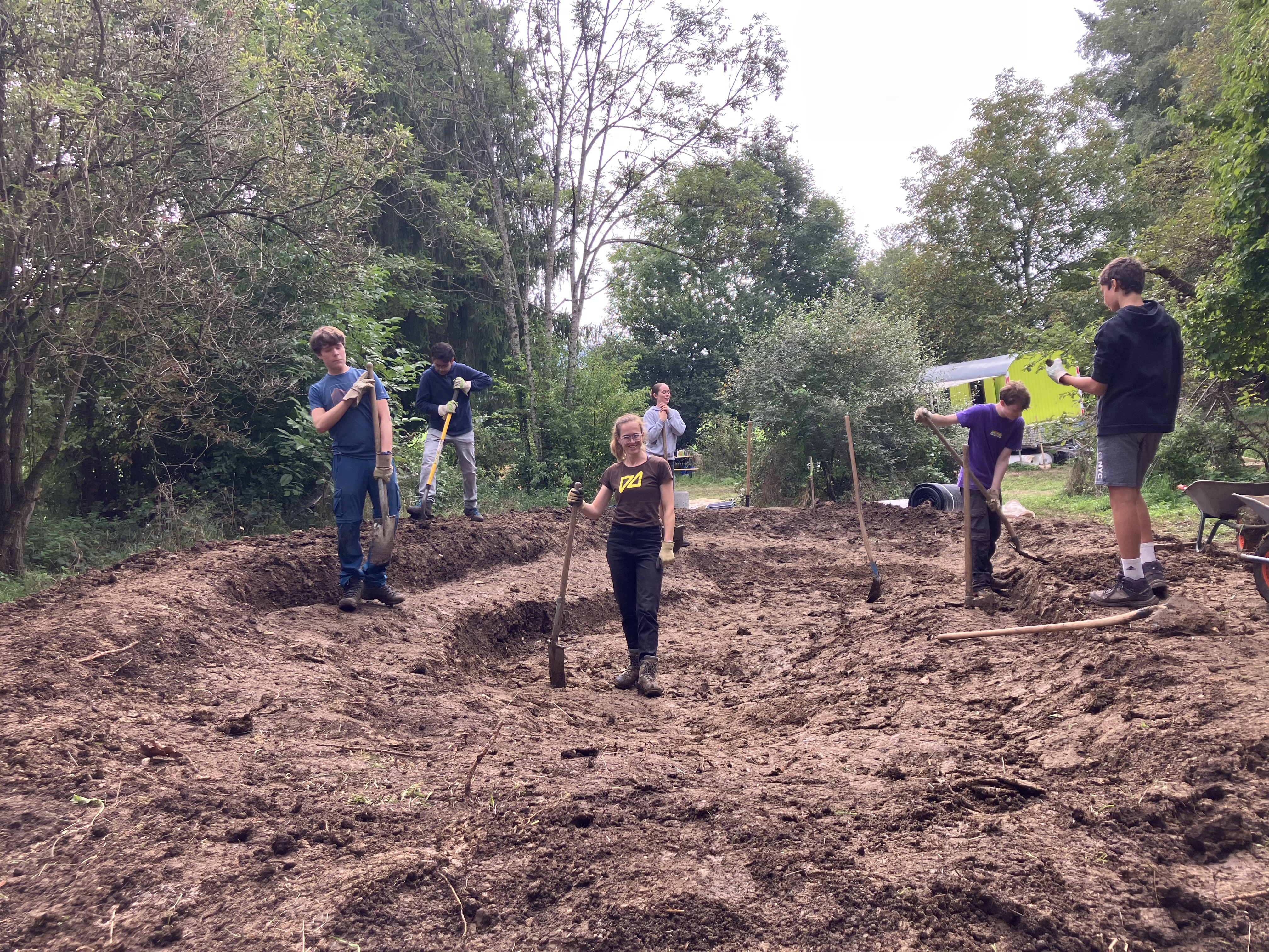 In den folgenden Tagen zeigte sich das Wetter von seiner besseren Seite: Die Sonne kam hervor, und je tiefer die Schülerinnen und Schüler gruben, desto trockener und leichter wurde der Boden. So machten sie stetig Fortschritte.