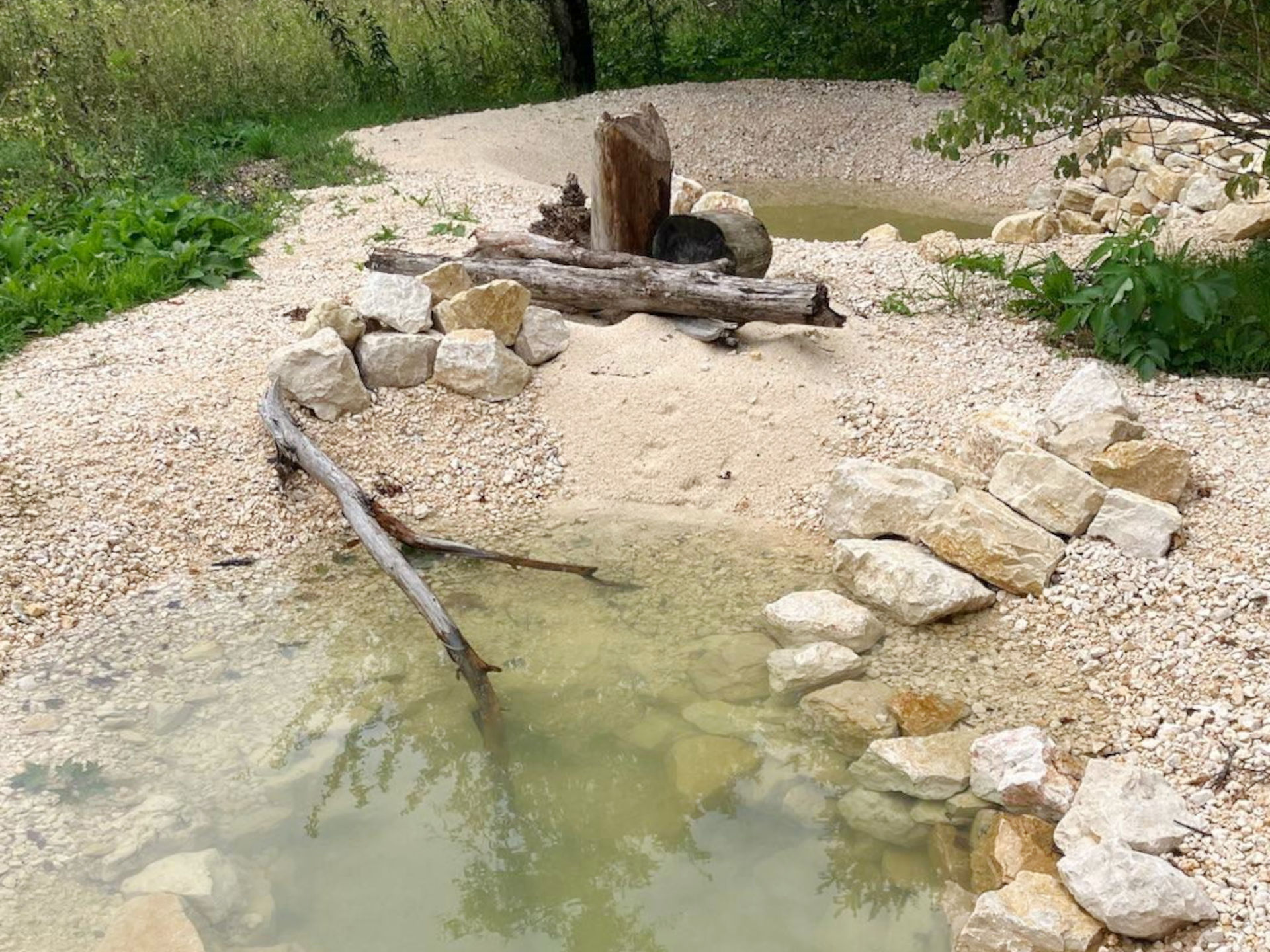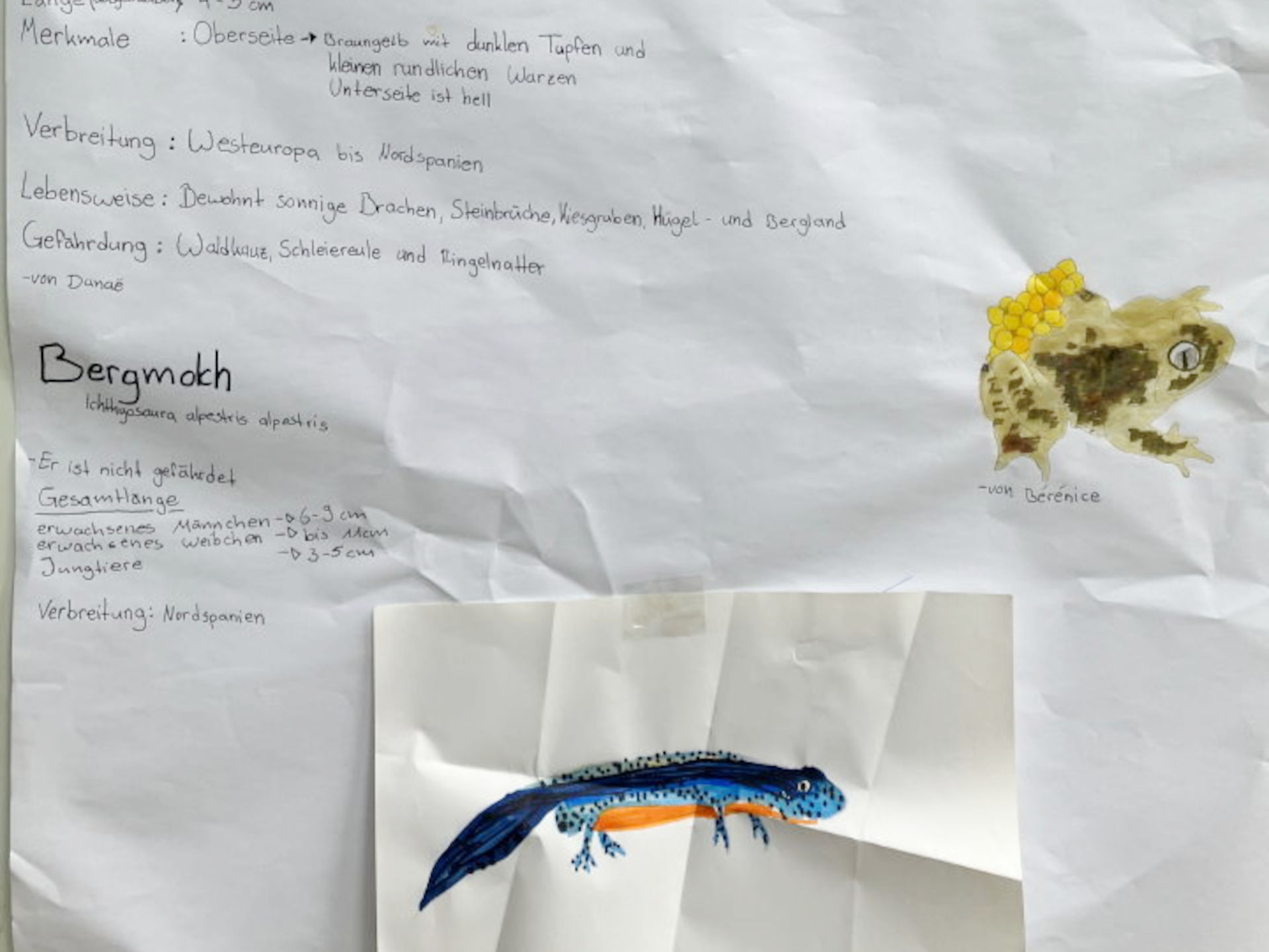 In den 5 Tagen der Projektwoche, haben die Schülerinnen und Schüler einen bereits angefangenen Weiher fertiggestellt sowie einen neuen komplett gebaut. Zudem haben die Lernenden ihren Mitschüler:innen in kurzen Präsentationen, spannendes über verschiedene Amphibien, wie etwa den Bergmolch oder die Gelbbauchunke erzählt. Neben dem Bau der Kleinstrukturen, hat die Klasse gefühlt 1000e von Karetten an Erde so platziert, dass hinter einem Steinwall eine weitere wertvolle Kleinstruktur entstanden ist. So haben die Schüler:innen als Landschaftsarchitekt:innen neue Lebensräume für Frösche & Co gestaltet. Zum Abschluss der Projektwoche haben wir an der Birs das Werken vom Biber — eines weiteren Landschaftsarchitekten —s bestaunt. Die Biber-Exkursion zeigte den Lernenden, welchen Wert dieser Nager für die Natur hat und verdeutlichte nochmals, wie wichtig naturnahe Gewässer sind.